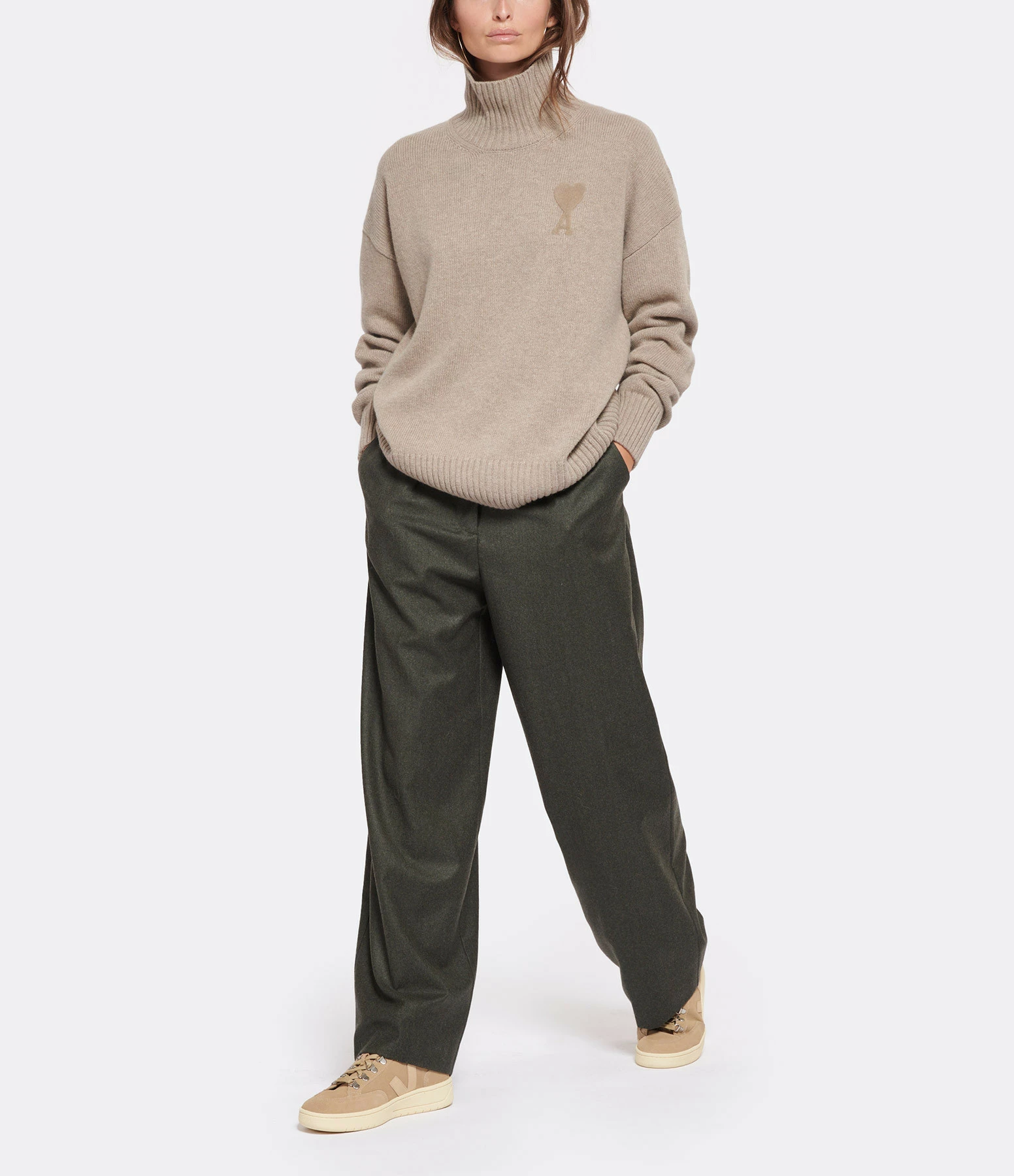AMI PARIS Pull Col Roulé Unisexe Ami De Cœur Laine Beige