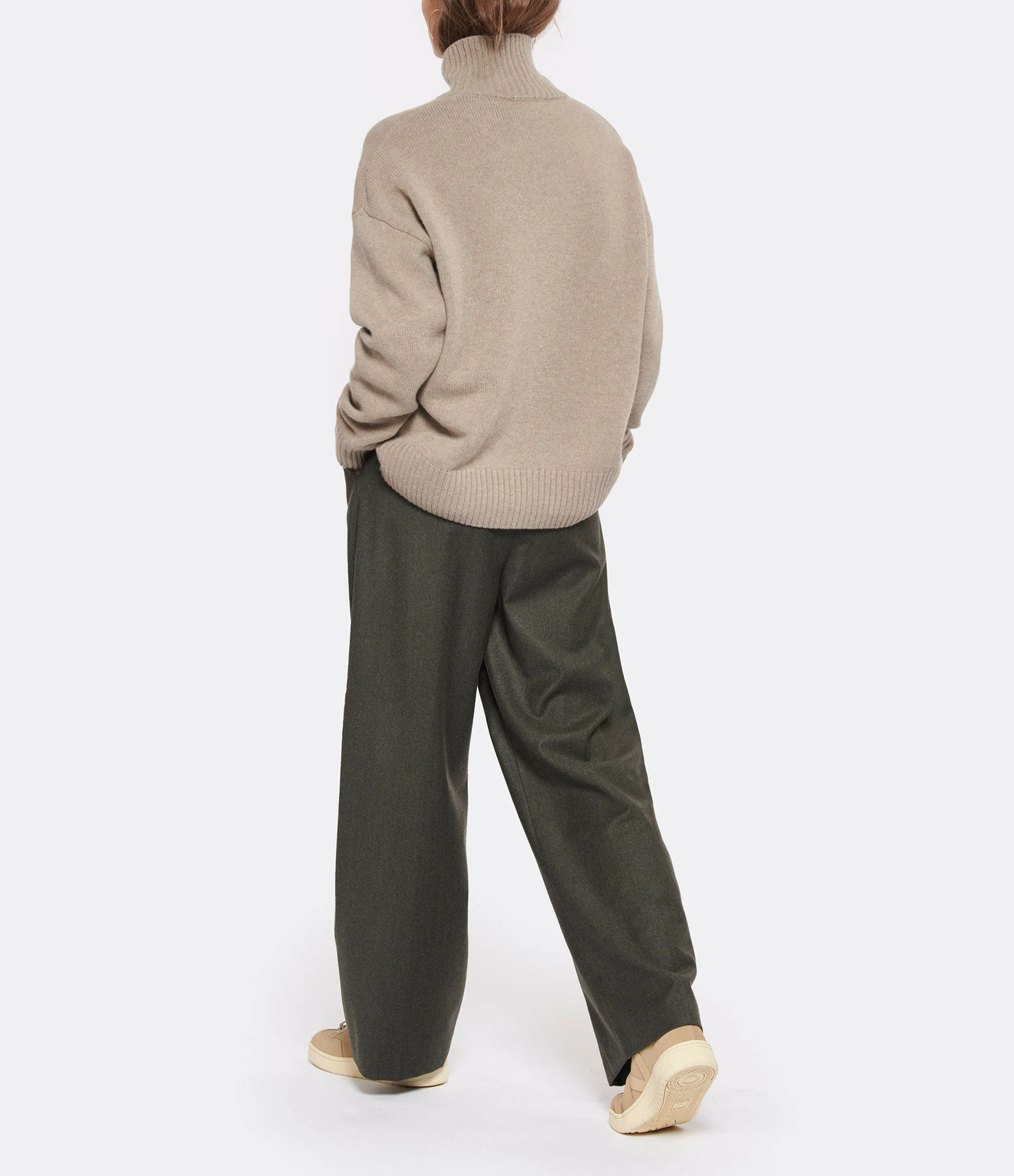 Pull en laine beige avec logo “Ami de cœur” brodé ton sur ton sur la poitrine. Col montant côtelé. Manches longues avec poignets côtelés. Coupe droite. Base droite côtelée.