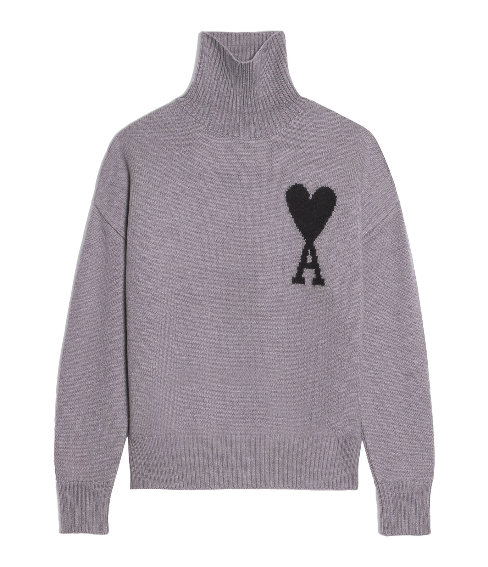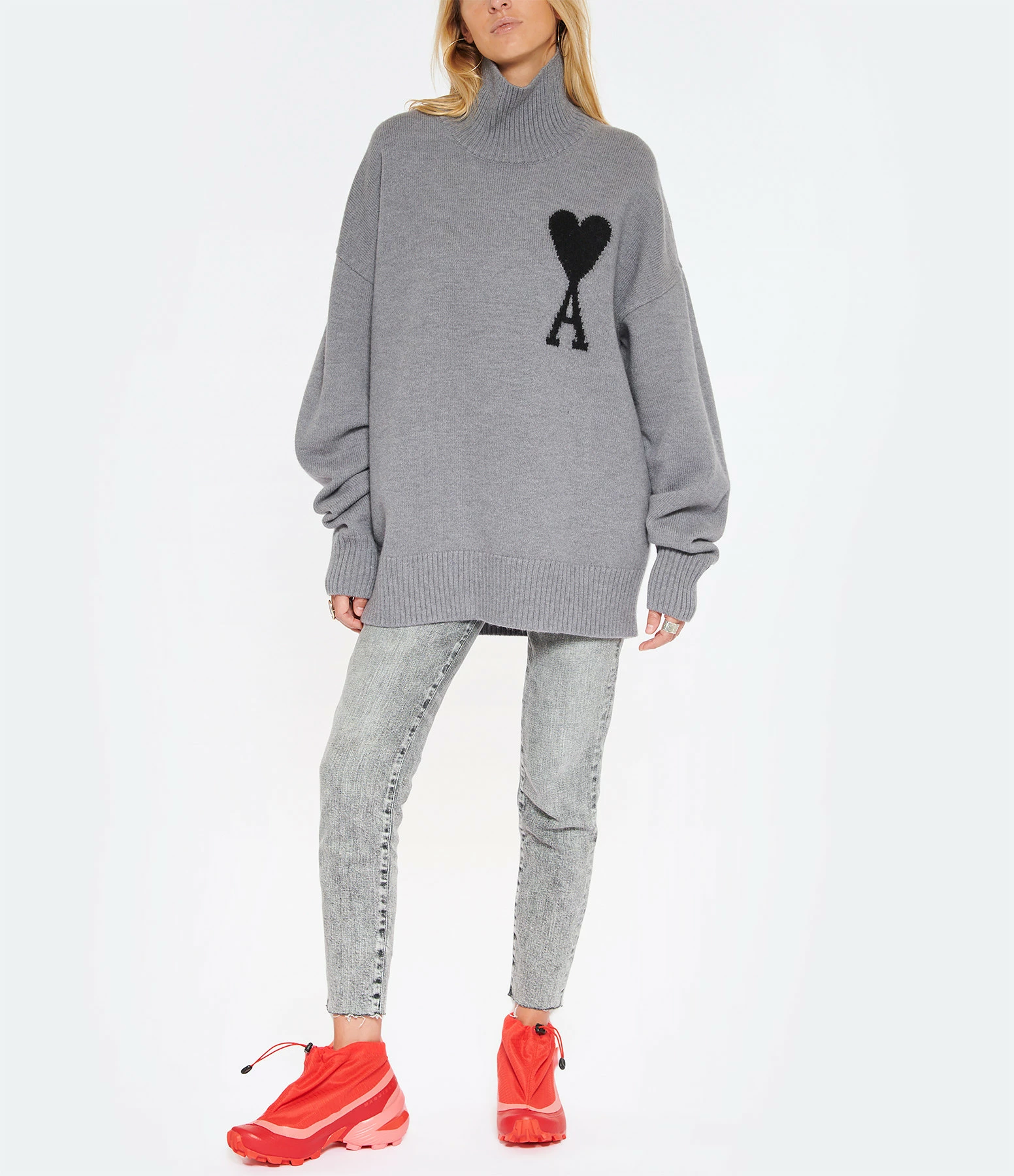 AMI PARIS Pull Unisexe Ami De Cœur Laine Gris Noir
