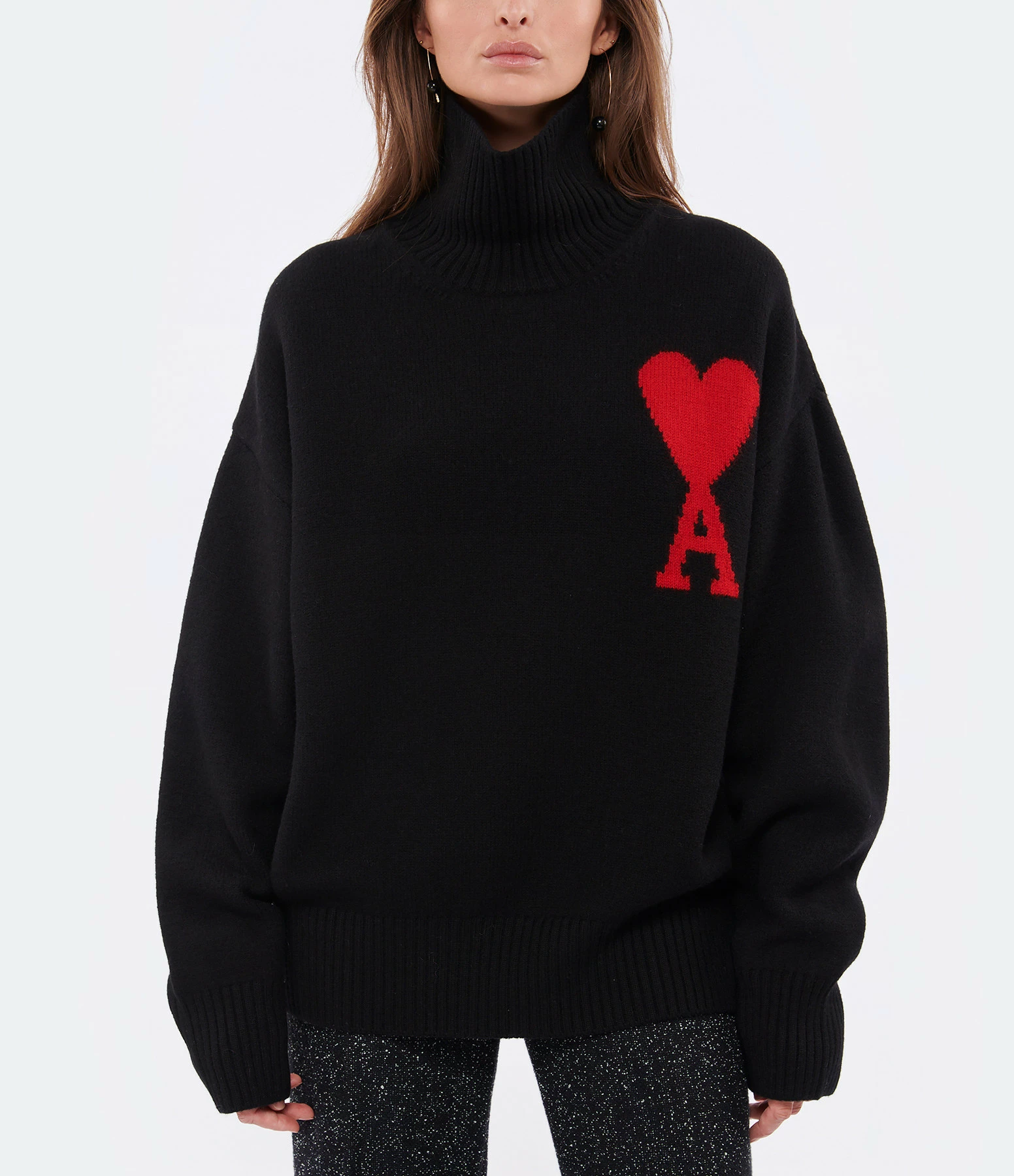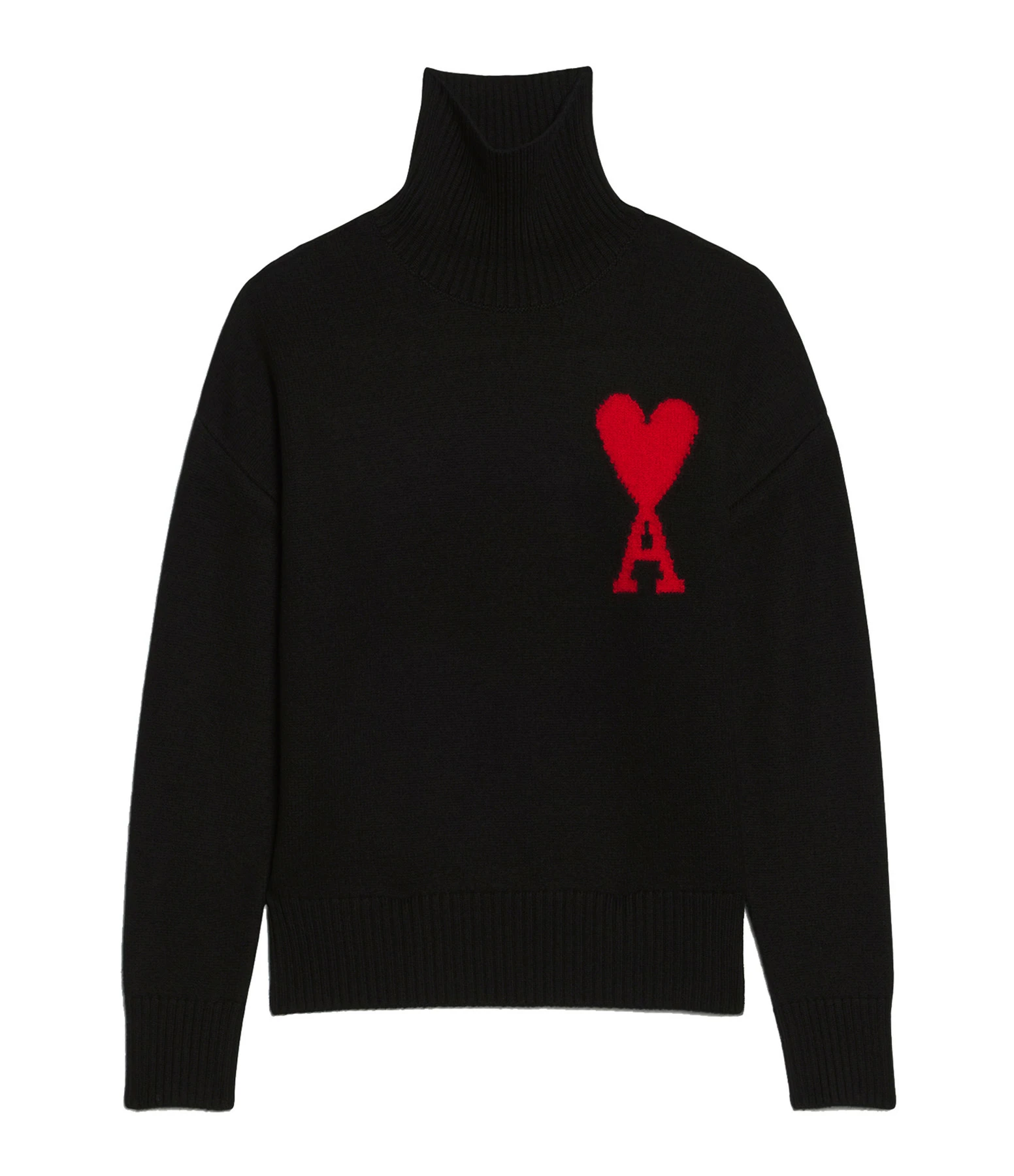 AMI PARIS Pull Unisexe Ami De Cœur Laine Noir Rouge