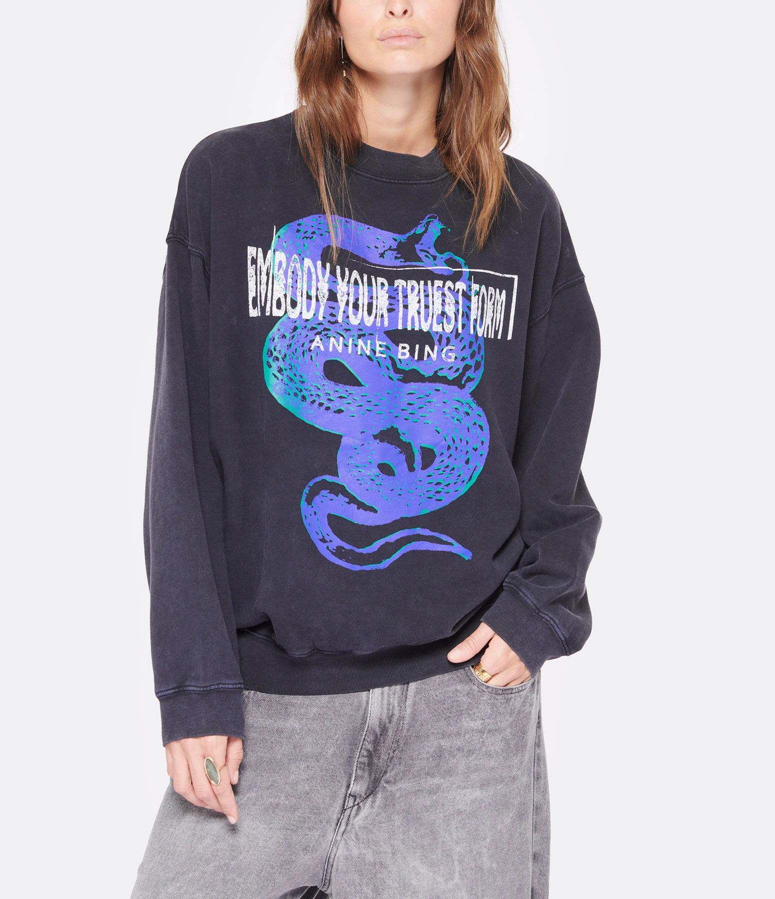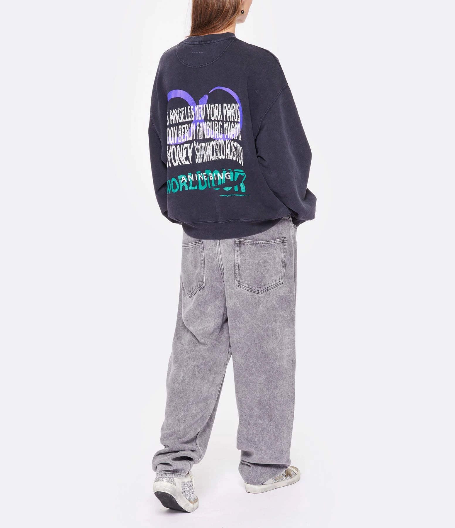 ANINE BING Sweatshirt Jaci Coton Organique Noir Délavé
