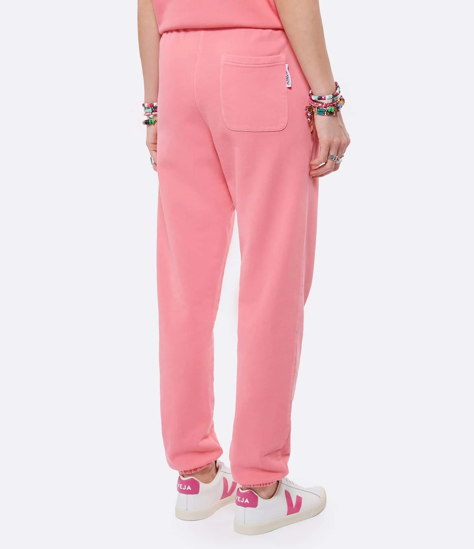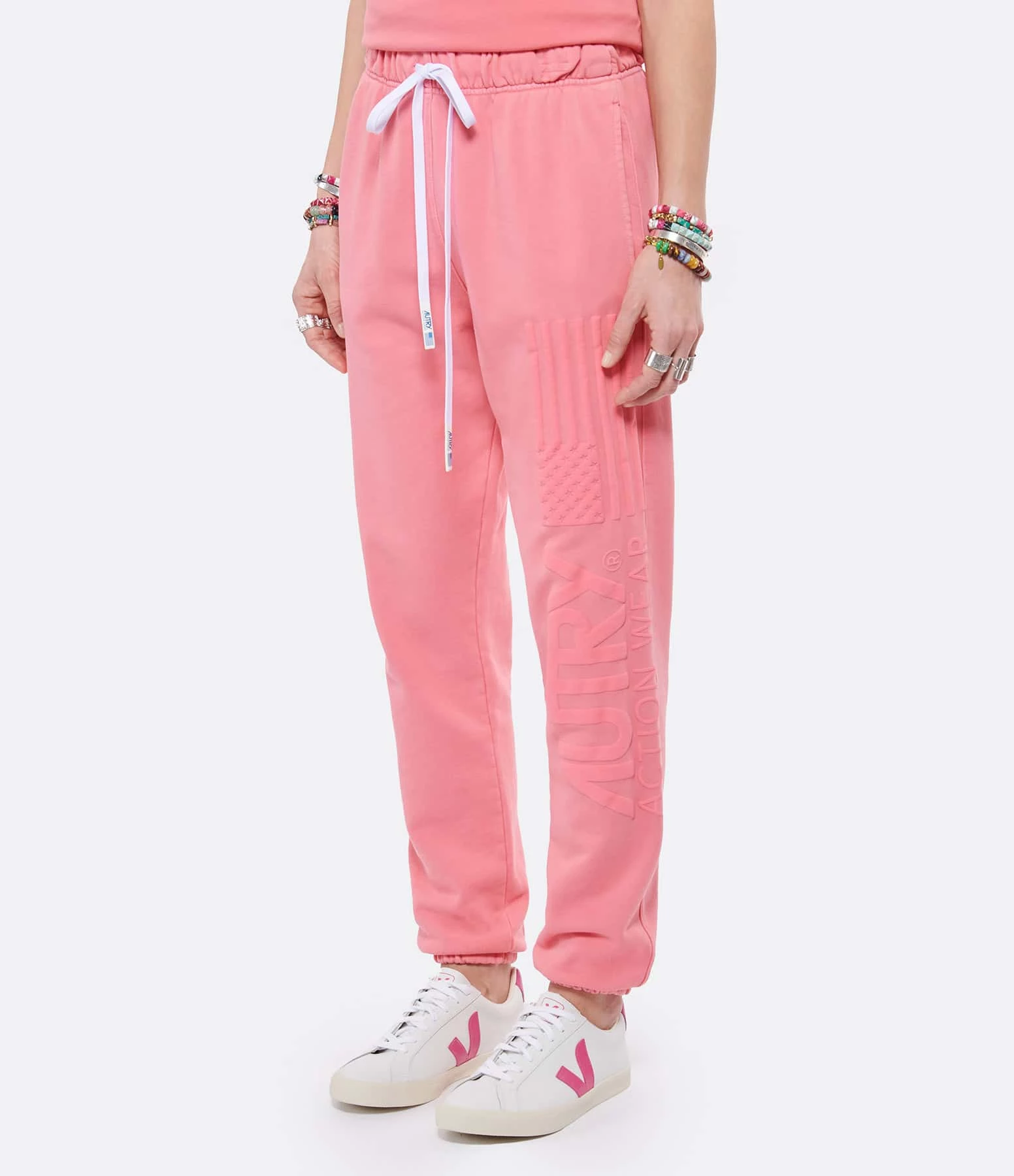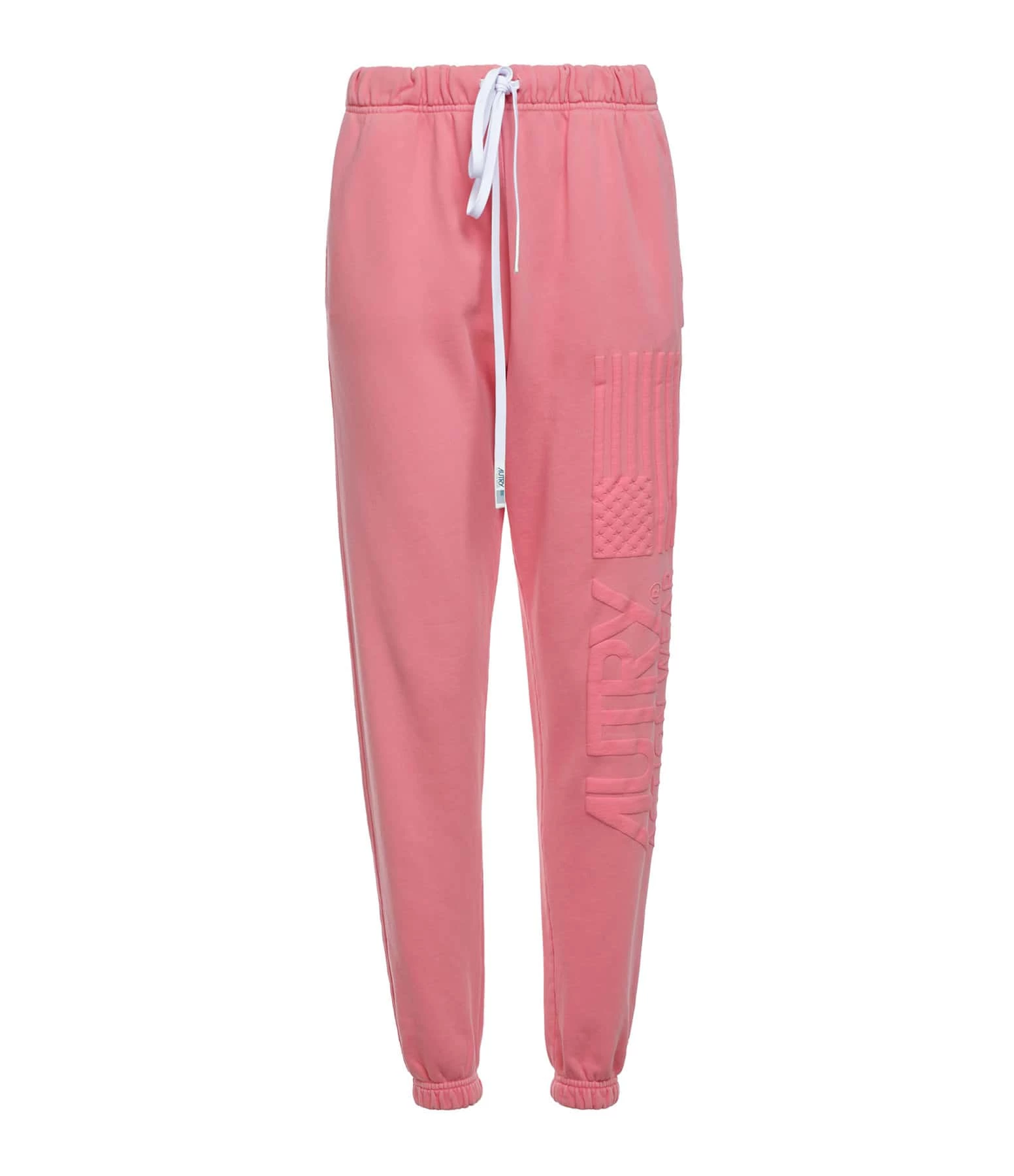 Pantalon de jogging doux en coton rose. Inscription sur la jambe gauche “Autry Action Wear”. Taille élastiquée avec liens de serrage. Cheville élastiquée. Deux poches fendues sur les côtés.