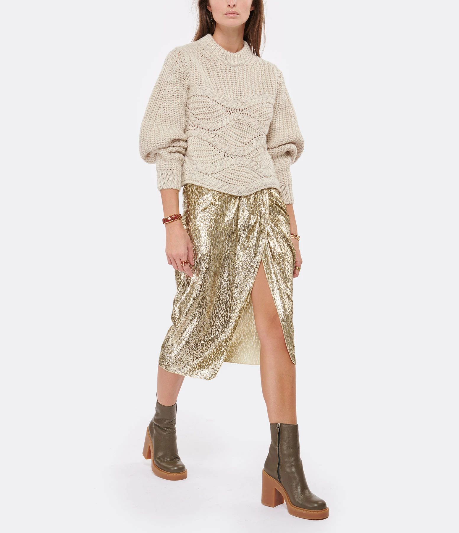 FORTE_FORTE Jupe Encanto Lurex Doré Sol