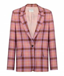 FORTE_FORTE Veste Blazer Tartan Laine Vierge Rose Wow
