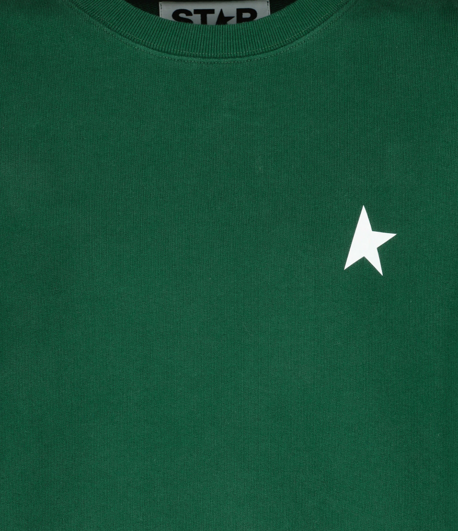 Sweatshirt en coton vert. Étoile blanche côté cœur. Col rond. Manches longues. Coupe droite. Base droite.