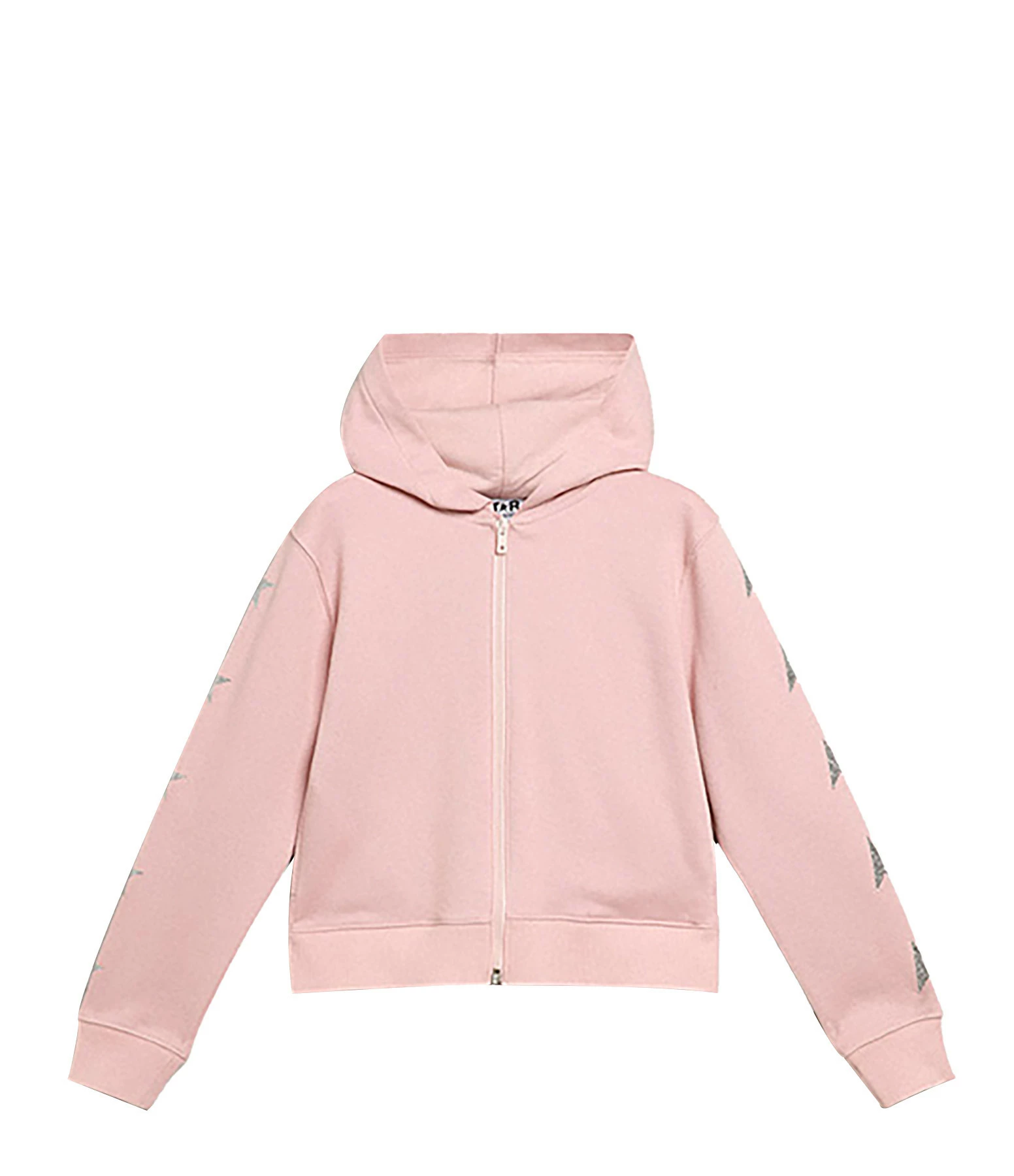 GOLDEN GOOSE Sweatshirt Hoodie Star Fille Zip Coton Rose Argenté