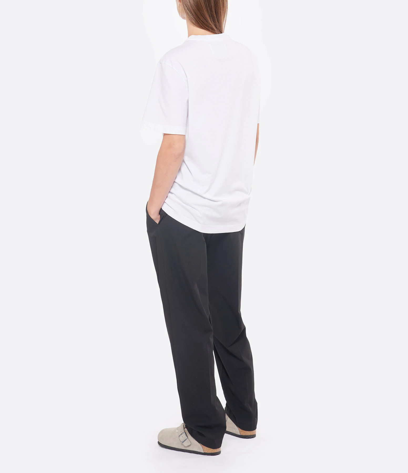 Tee-shirt en coton blanc pour homme avec étoile noire sur la poitrine. Col rond. Manches courtes. Coupe droite. Base droite.