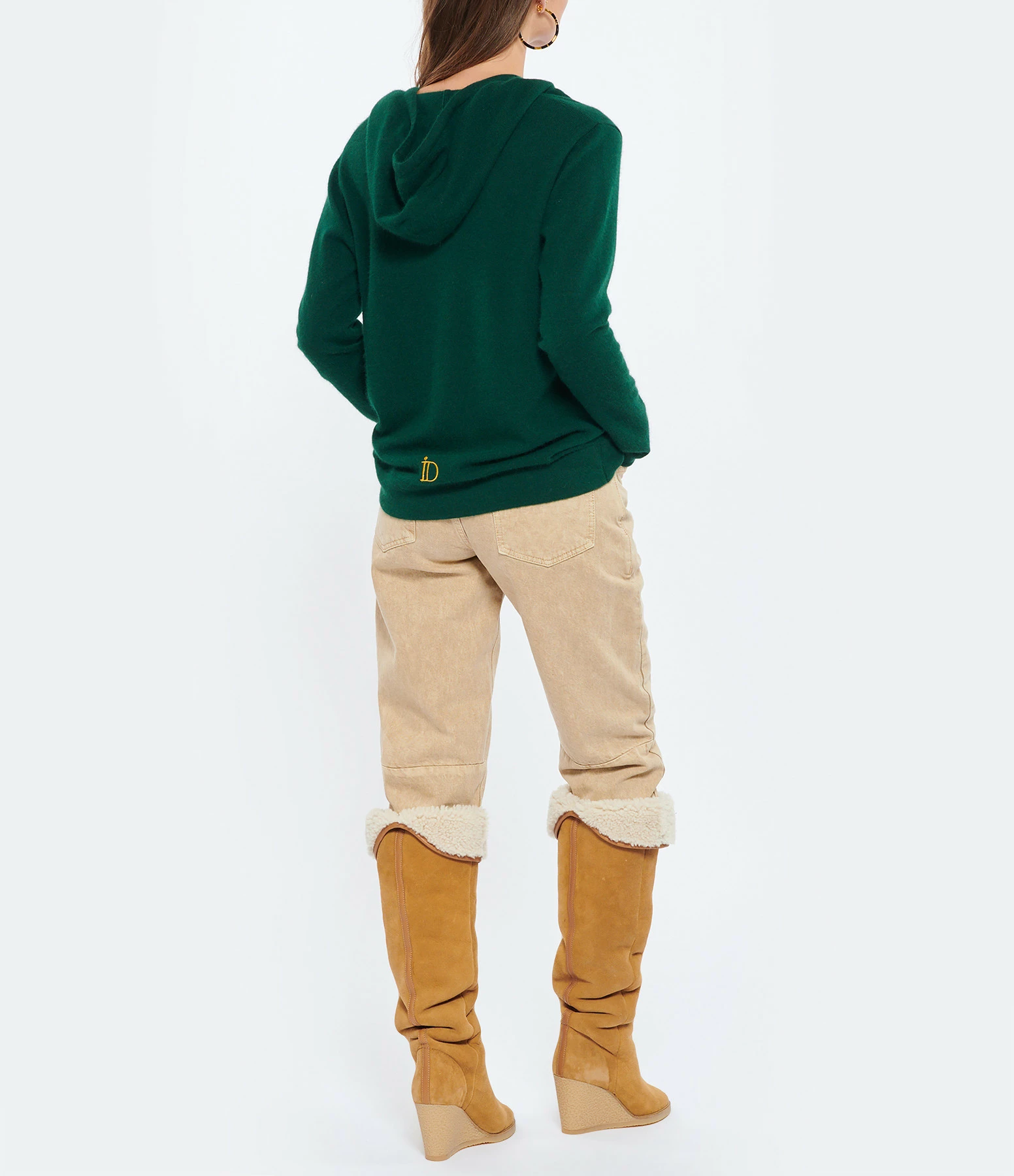 IDA DEGLIAME Pull Mon Hoodie Chérie Cachemire Vert Chrome