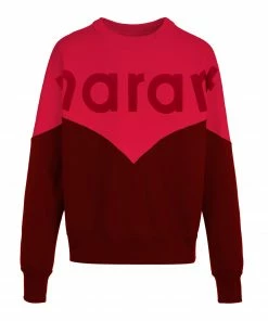 Sweatshirt en coton rouge. Inscription “MARANT” bordeaux sur l’avant. Col rond. Manches longues. Coupe droite et base droite.