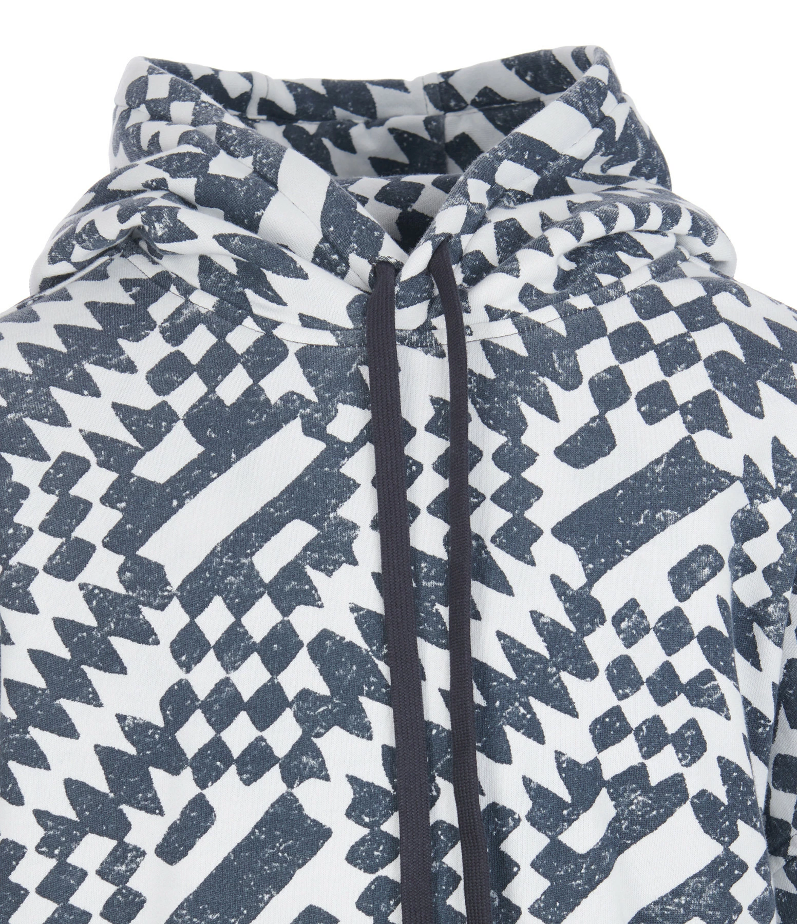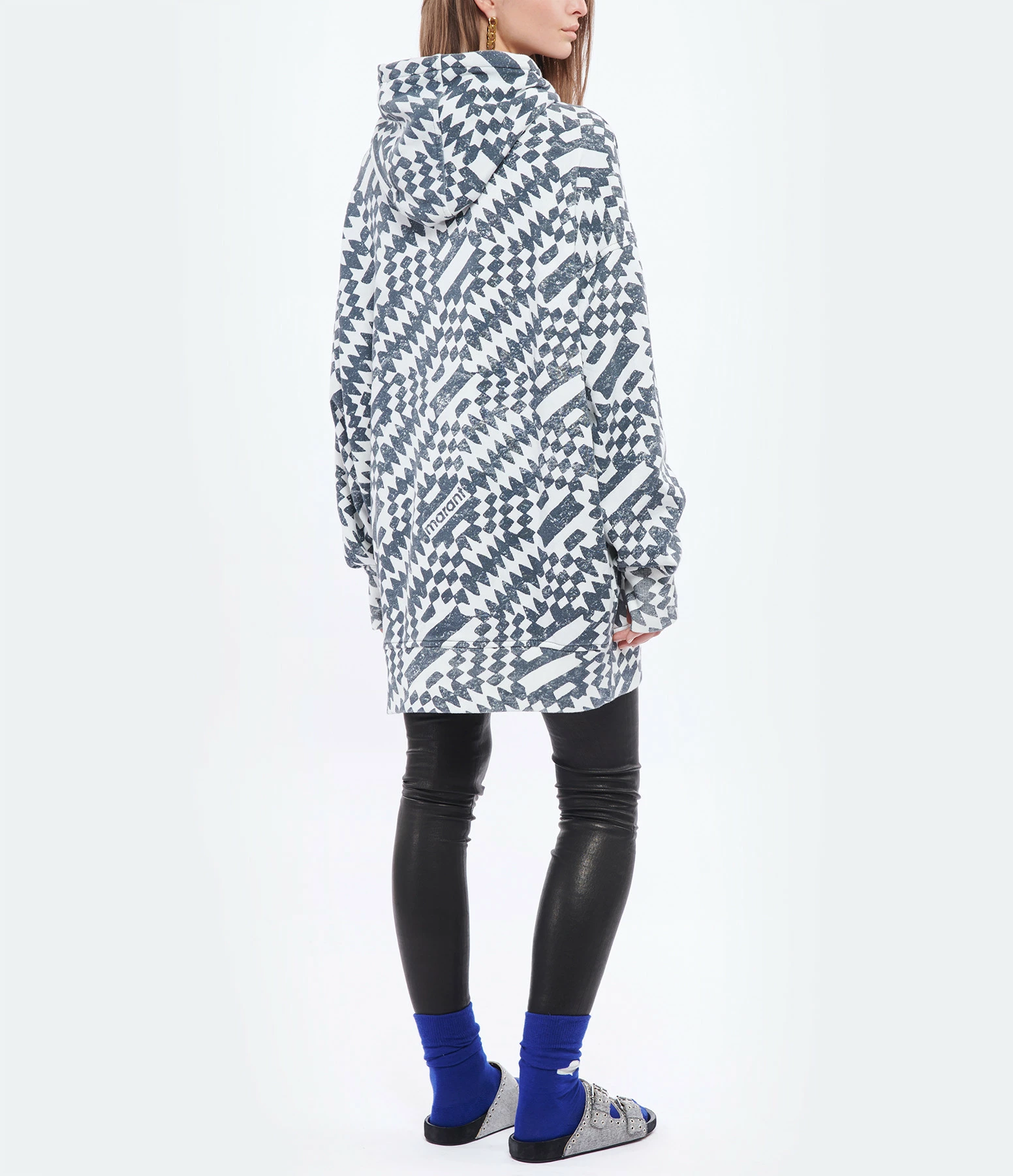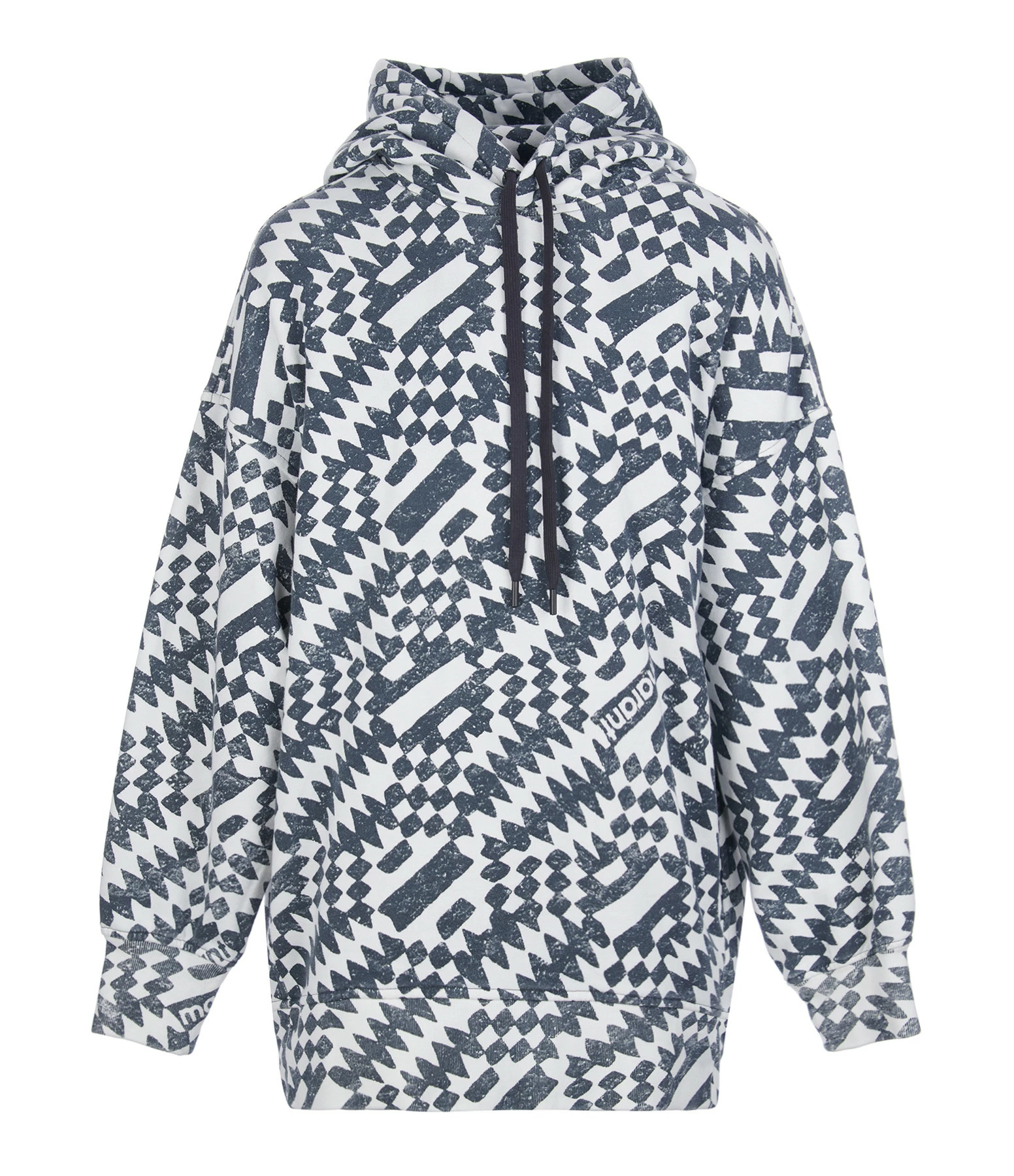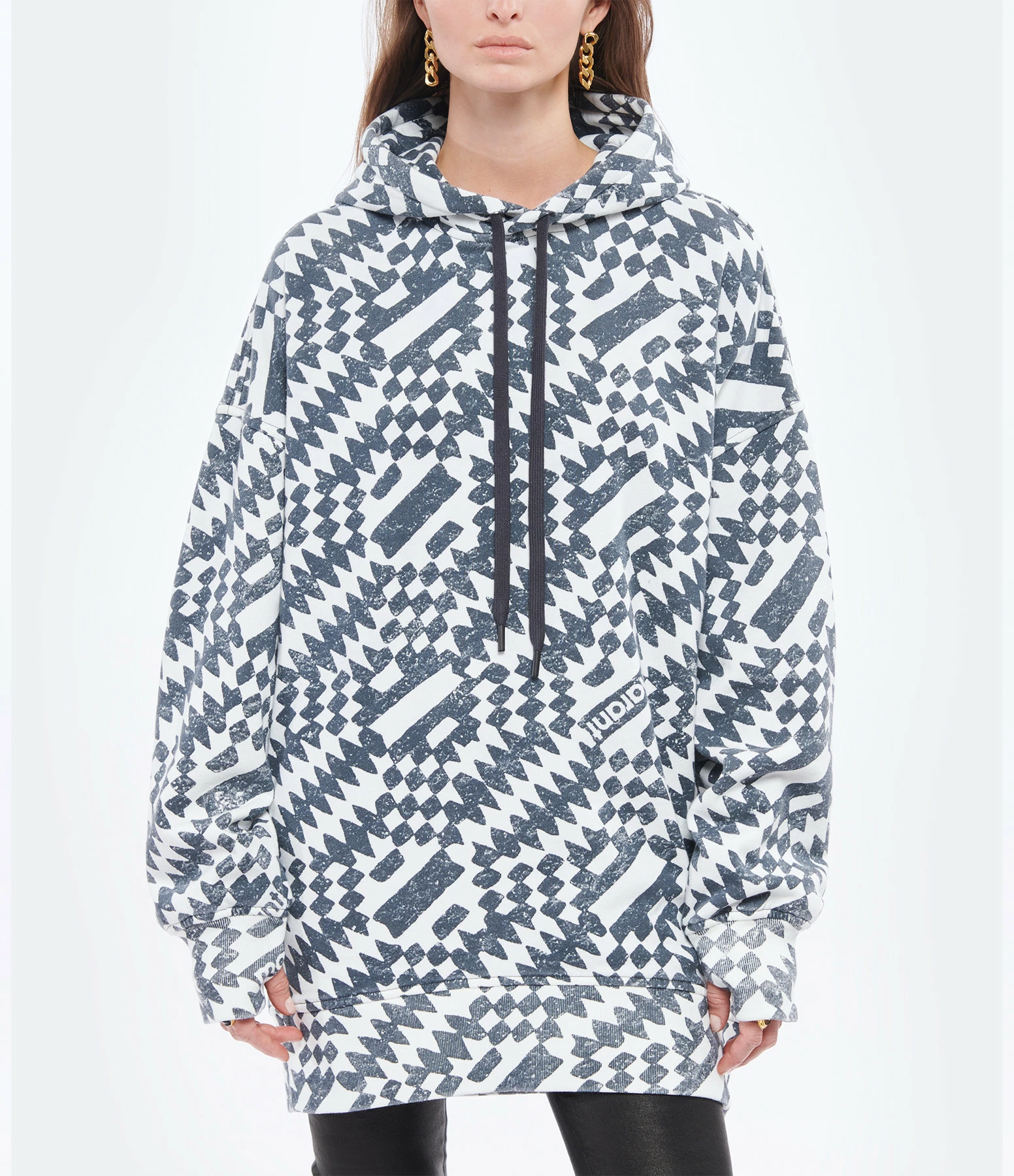 Sweatshirt oversize en coton à imprimé noir et blanc. Capuche avec liens de serrage. Manches longues. Coupe ample. Base droite.