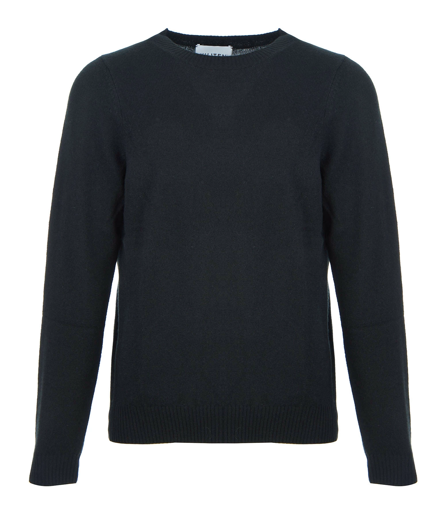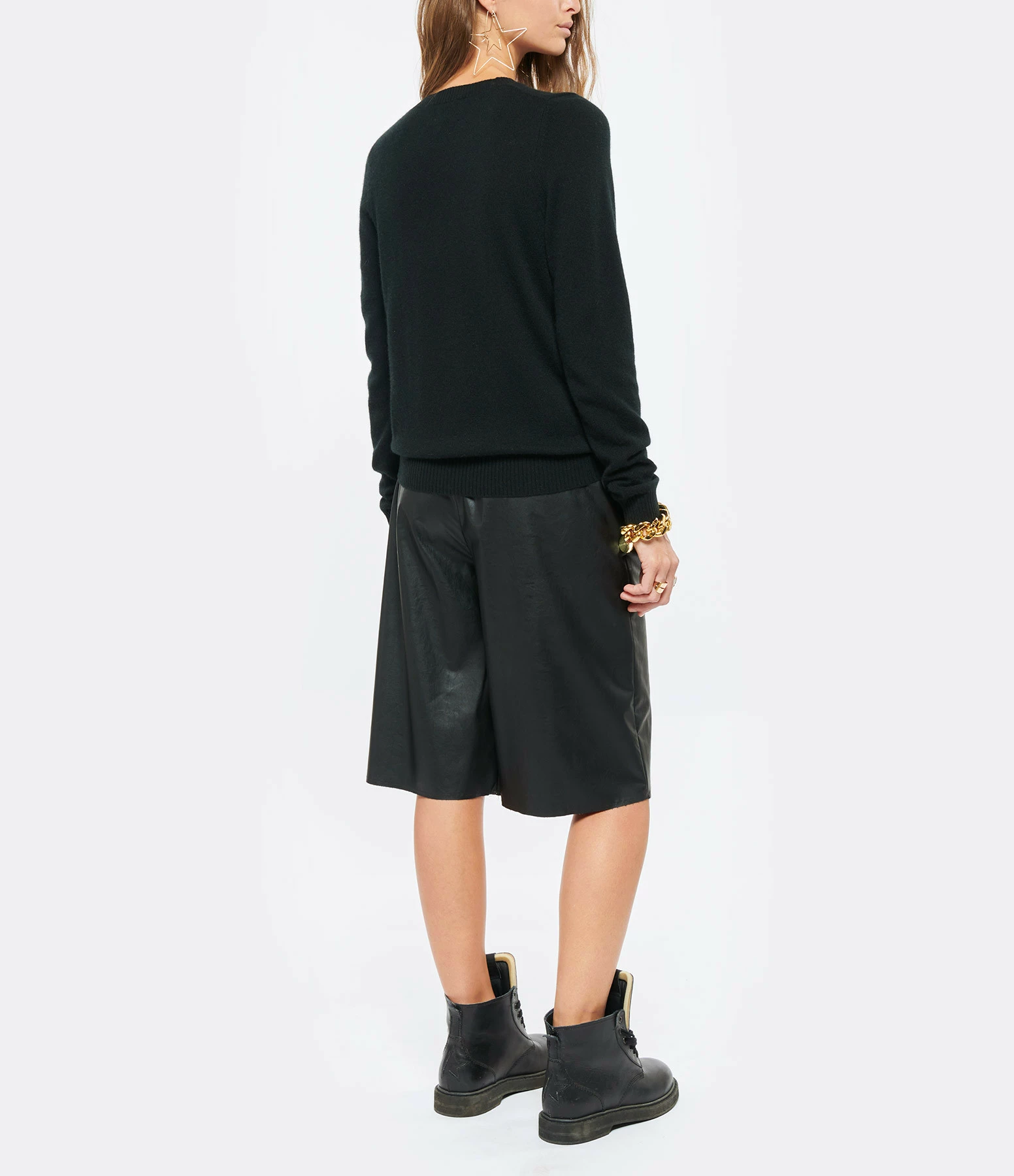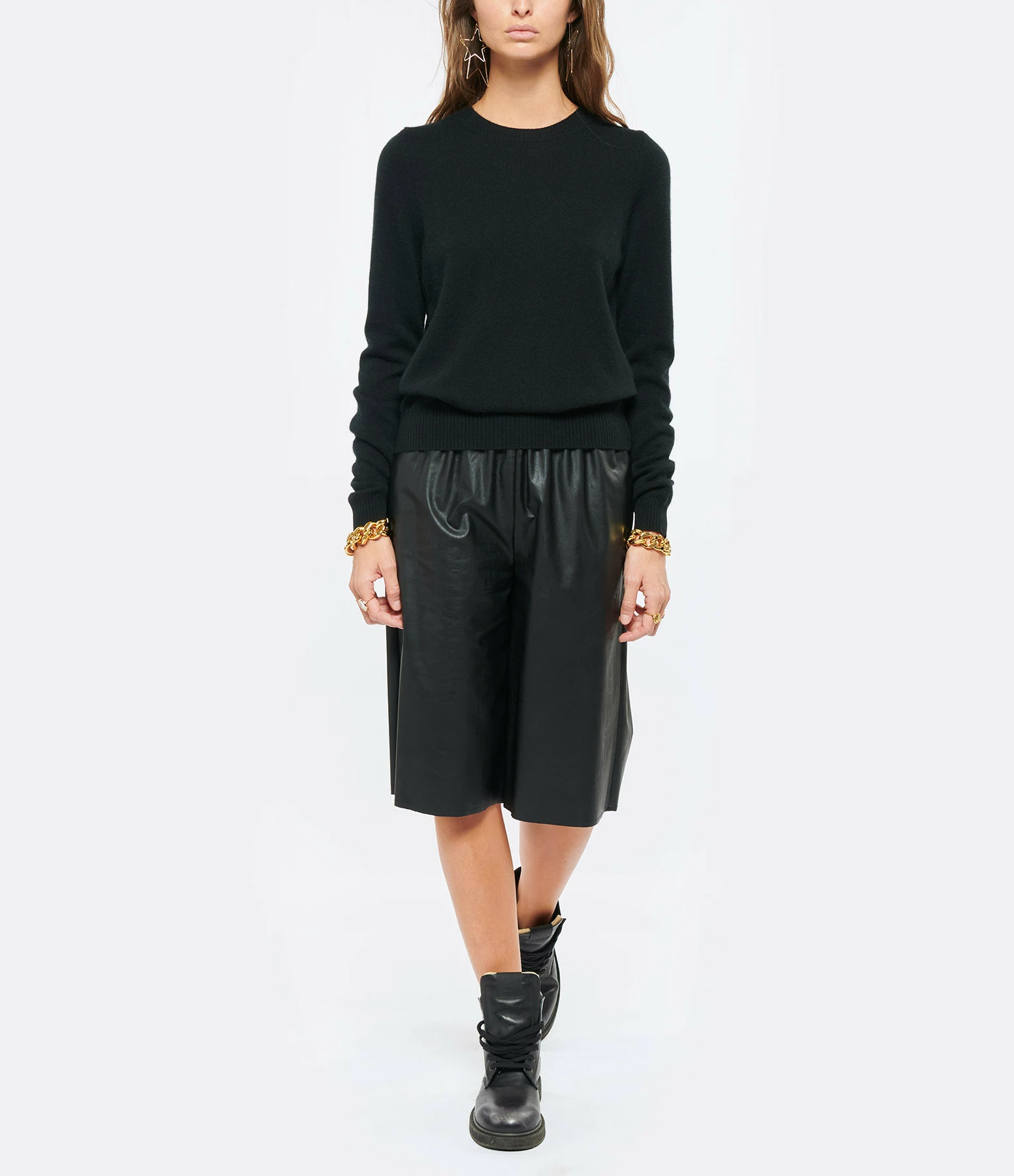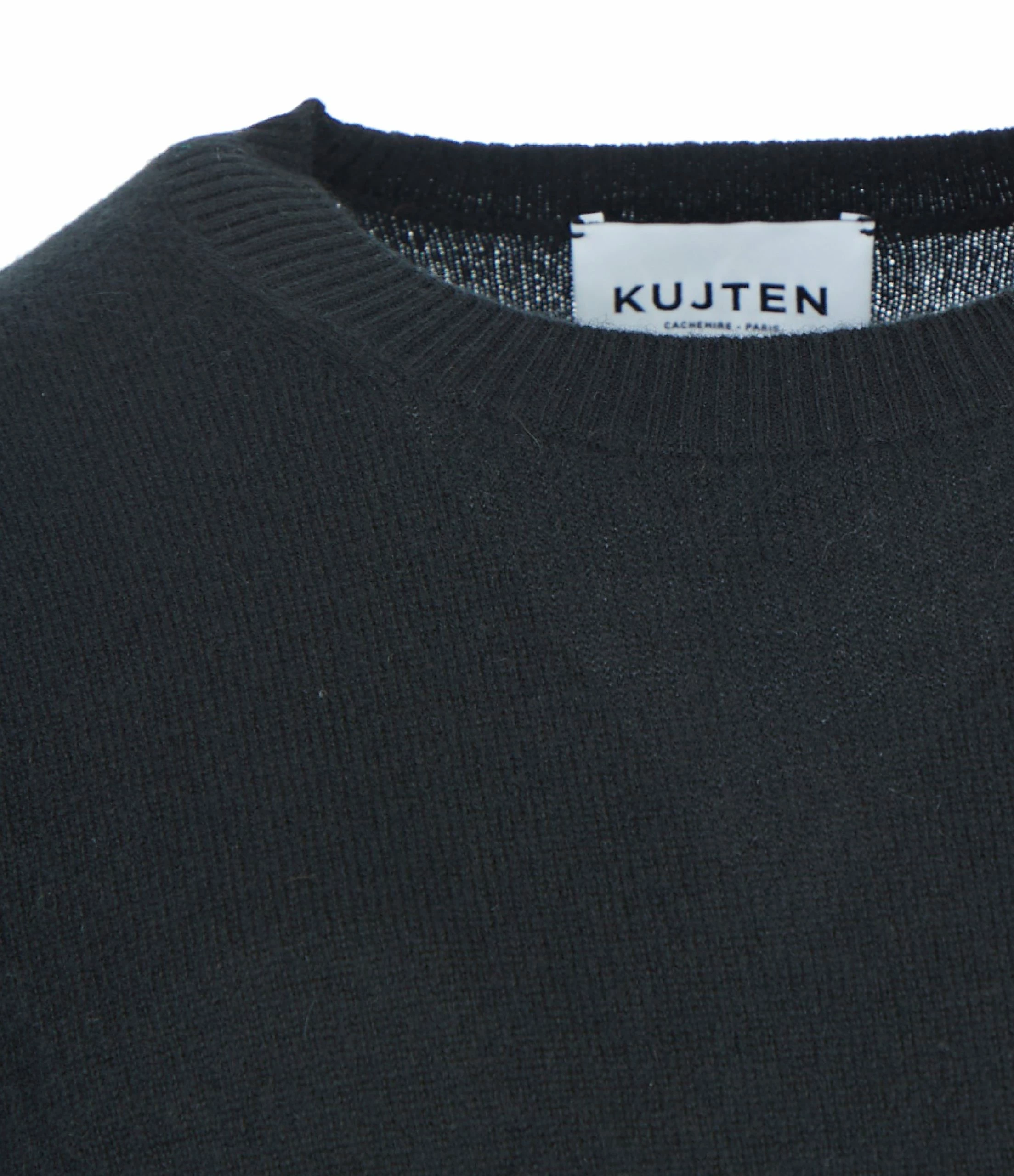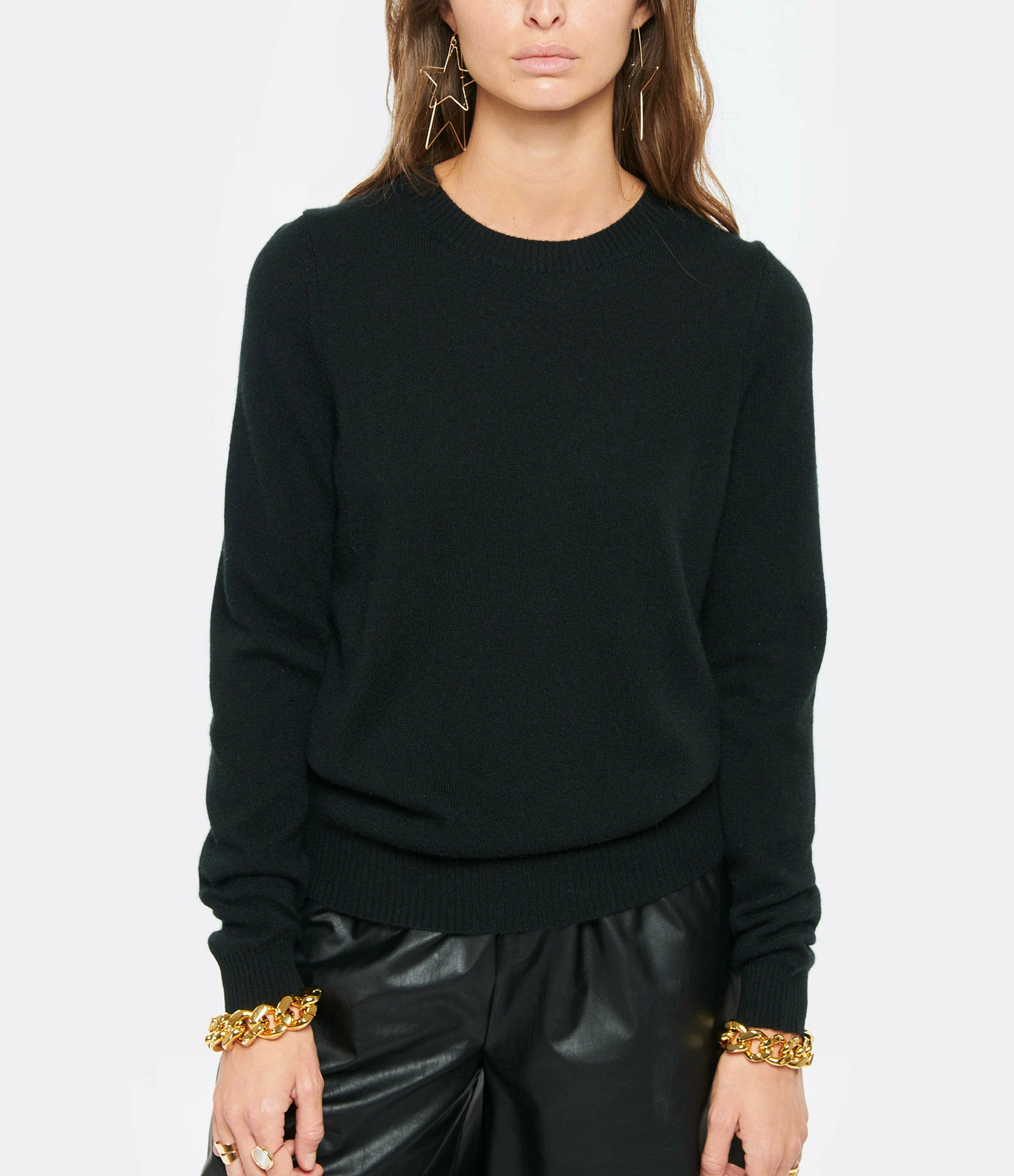 Pull en cachemire noir. Col rond. Manches longues. Coupe droite près du corps. Base droite.