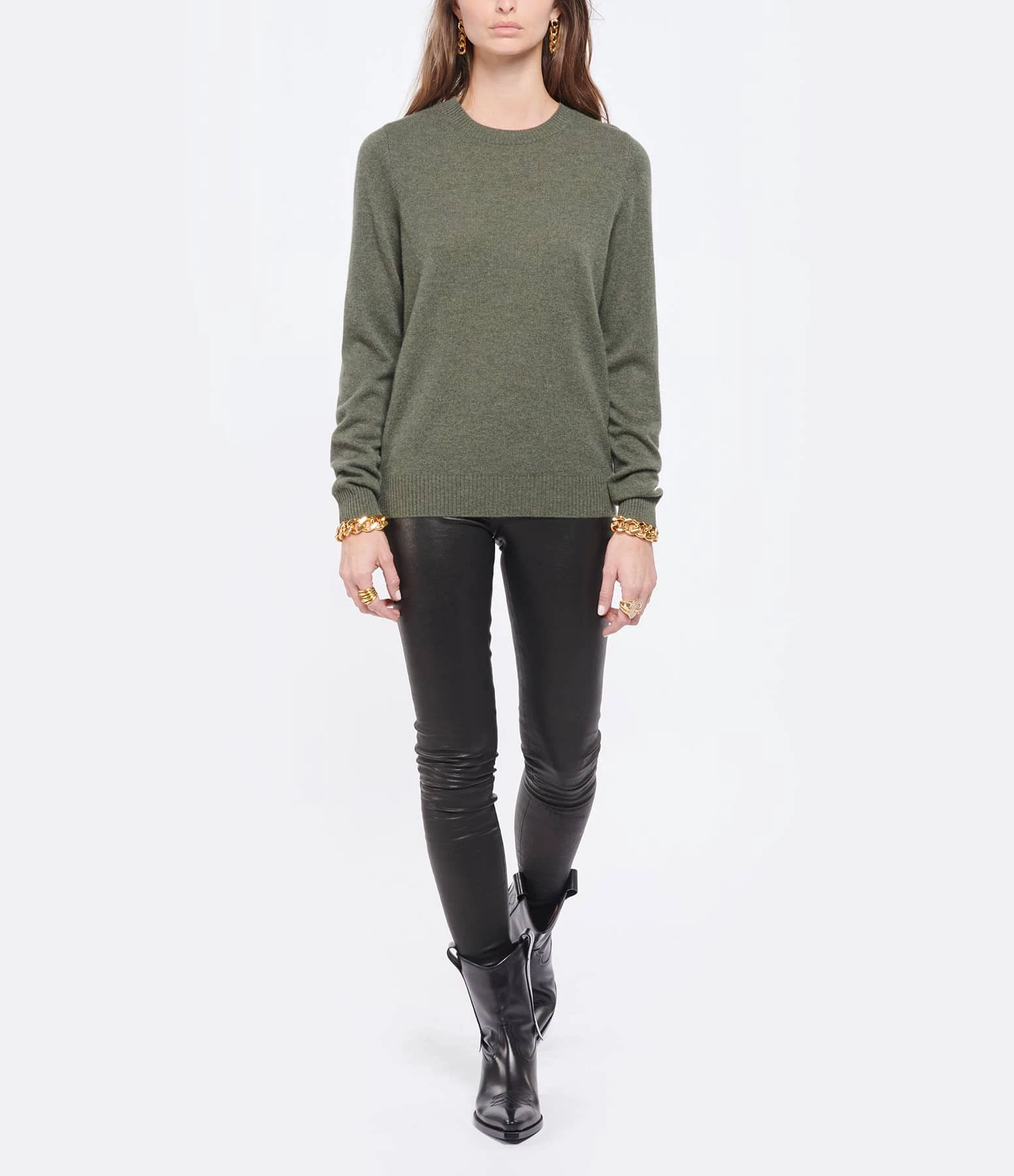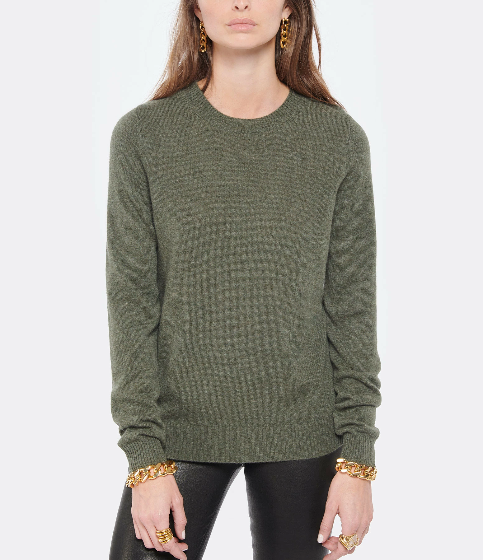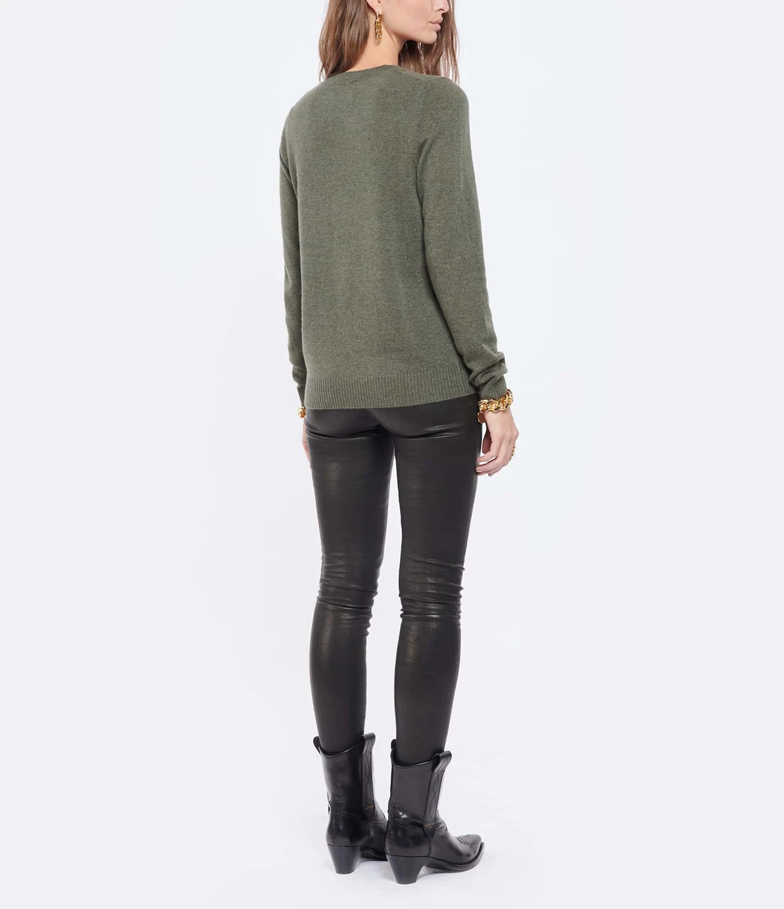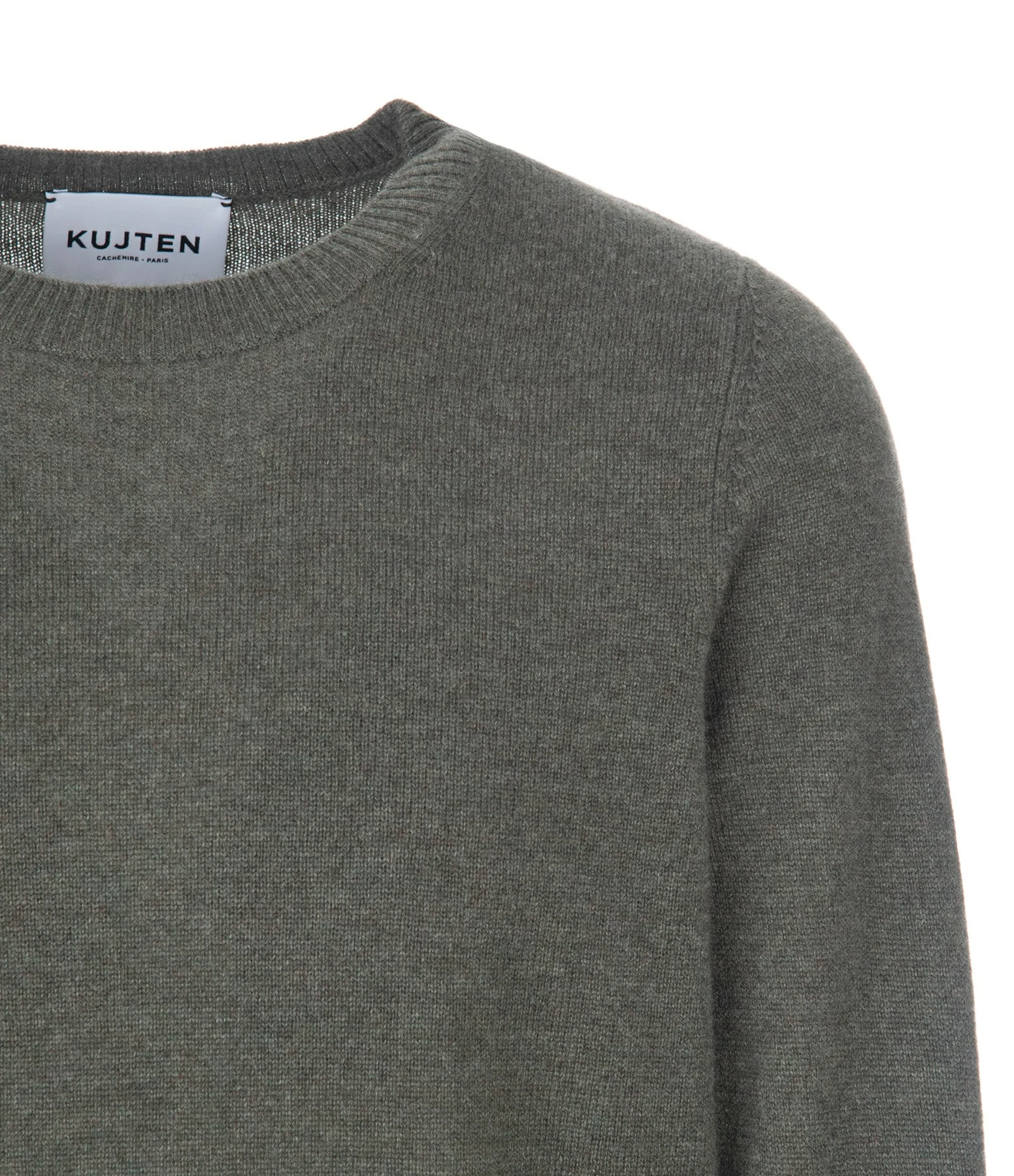 KUJTEN Pull Dorita Col Rond Cachemire Kaki Foncé, Exclusivité Lulli