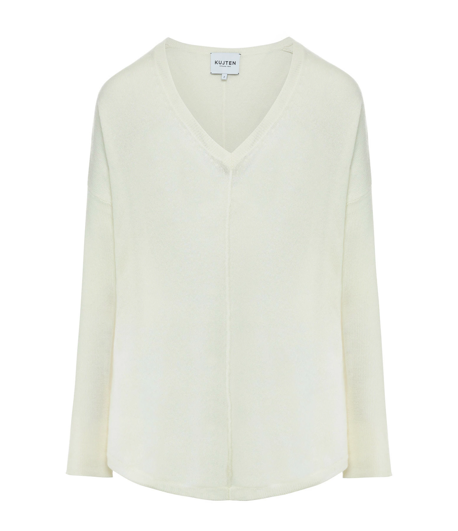 KUJTEN Pull Misha Col V Oversize Cachemire Blanc