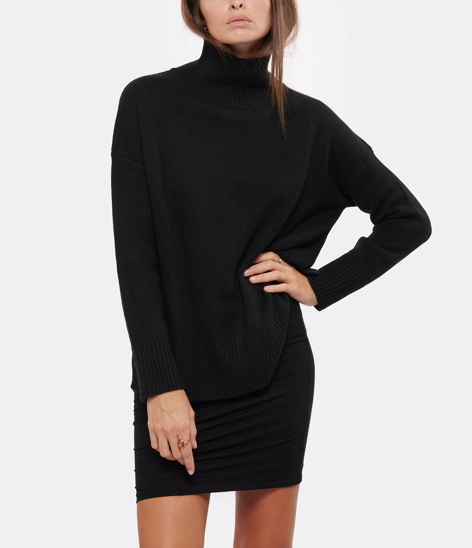 KUJTEN Pull Ulla Col Cheminé Oversize Cachemire Noir