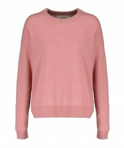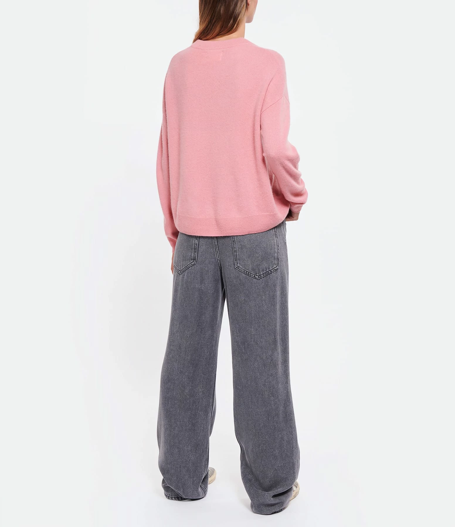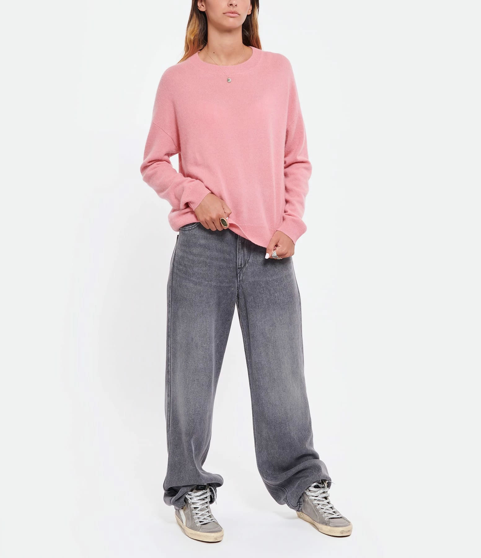 Pull en cachemire rose blush. Col rond côtelé. Manches longues avec poignets côtelés. Coupe droite. Base droite côtelée.