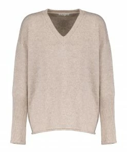 MAJESTIC FILATURES Pull Col V Laine Cachemire Ficelle