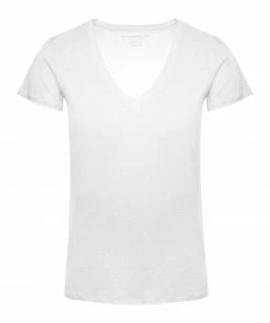 Tee-shirt manches courtes en lin blanc. Col en V. Base droite.