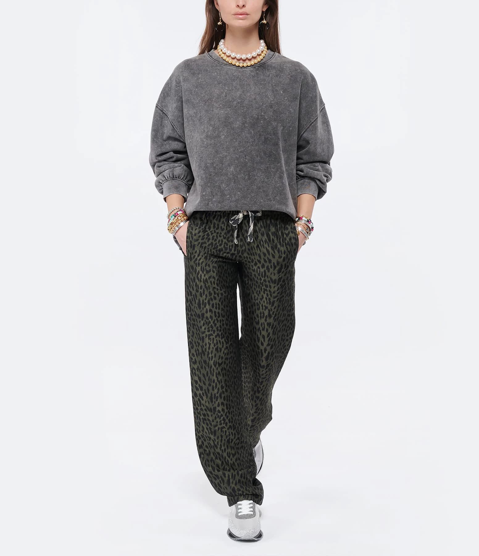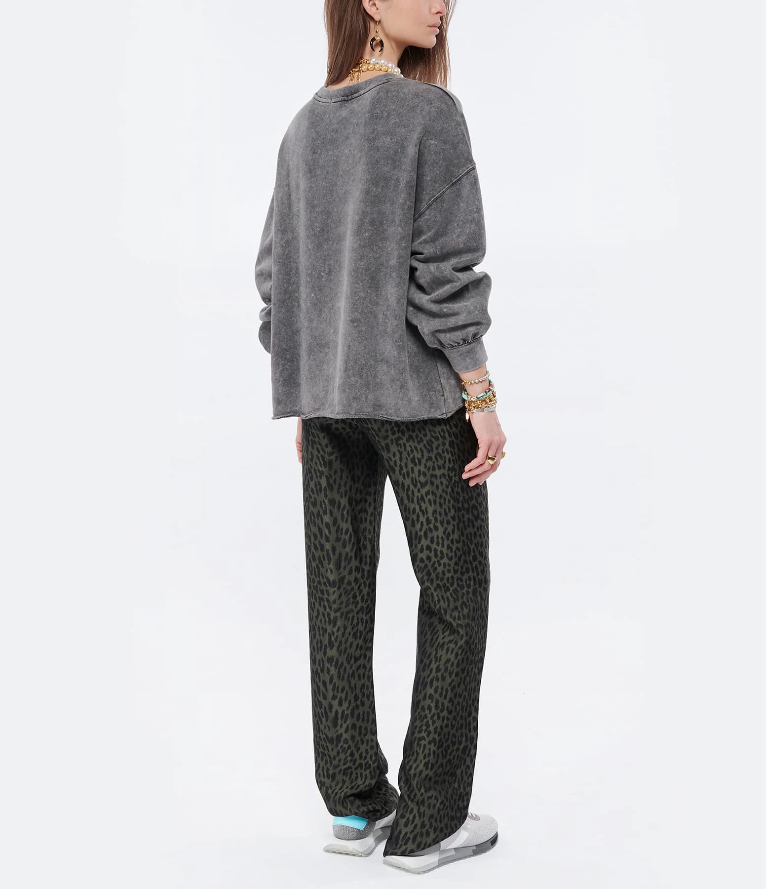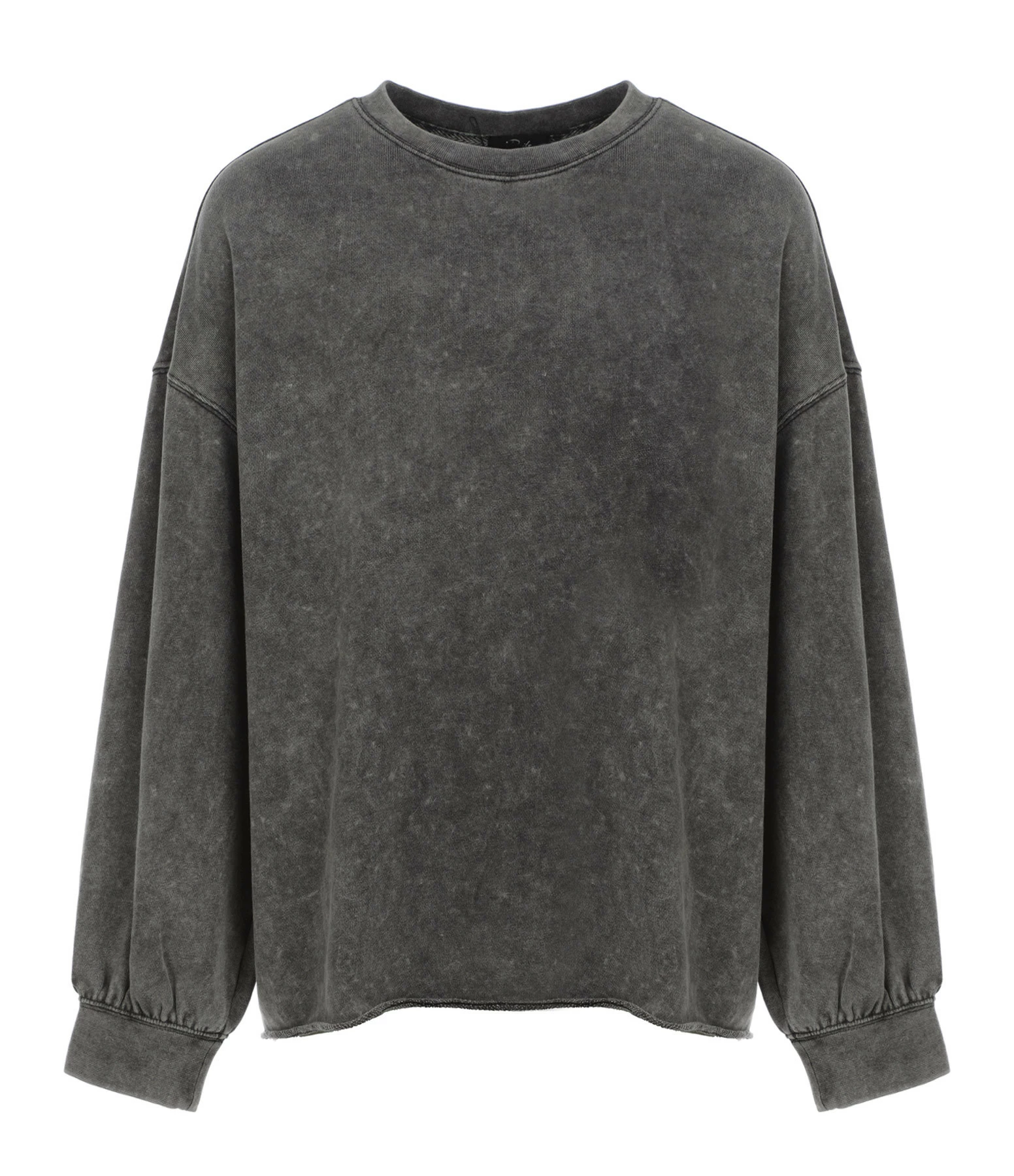 Sweatshirt en coton gris délavé. Col rond. Manches longues resserrées aux poignets. Coupe droite. Base droite roulottée.