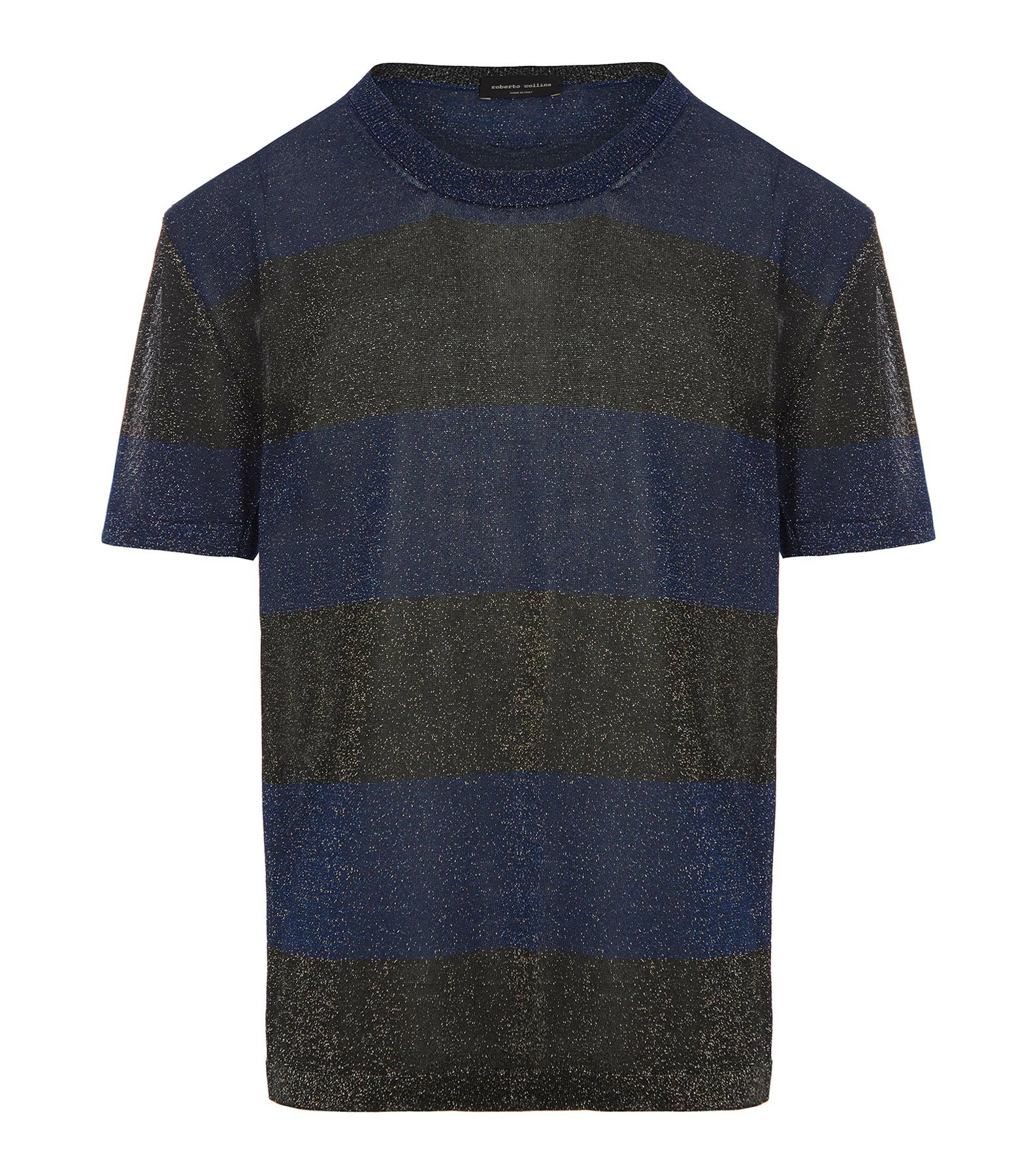 ROBERTO COLLINA Tee-shirt Rayures Bleu Noir
