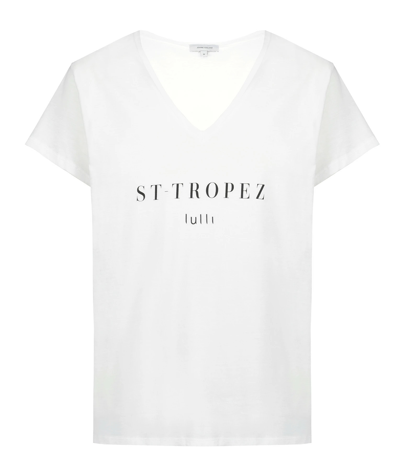 Tee-shirt Lulli St-Tropez Col V Coton Bio Blanc, Collaboration Jeanne Vouland X Lulli