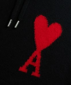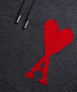 AMI PARIS Pull Col Roulé Unisexe Ami De Cœur Laine Gris Chiné