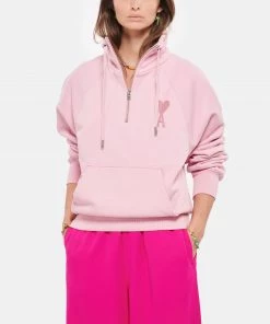 AMI PARIS Sweatshirt Zippé Unisexe Ami De Cœur Coton Biologique Rose Pâle